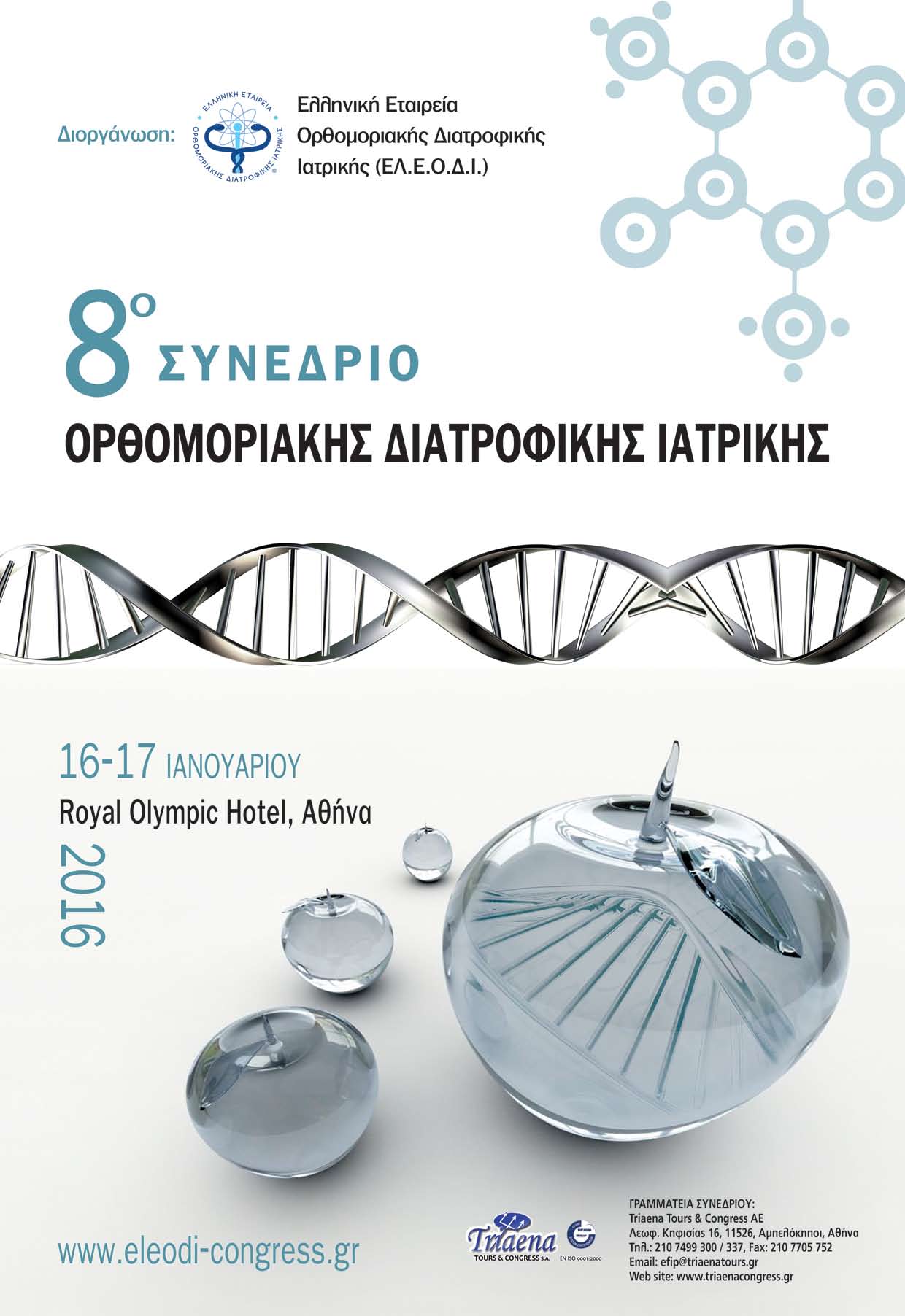 Θα θέλαμε να σας ενημερώσουμε για το 8ο Συνέδριο Ορθομοριακής Διατροφικής Ιατρικής το οποίο θα διεξαχθεί στην Αθήνα, 16-17 Ιανουαρίου 2016 στο ξενοδοχείο Royal Olympic.