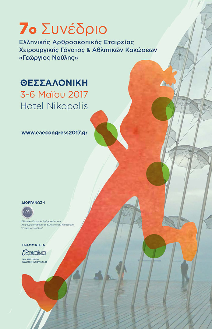 3-6052019-7o-sinedrio-orthroskopikis-etaireiasΤο 7ο Συνέδριο της Ελληνικής Αρθροσκοπικής Εταιρείας Χειρουργικής Γόνατος και Αθλητικών Κακώσεων "Γεώργιος Νούλης", θα διεξαχθεί 3-6 Μαΐου 2017 στο ξενοδοχείο Nikopolis της Θεσσαλονίκης.